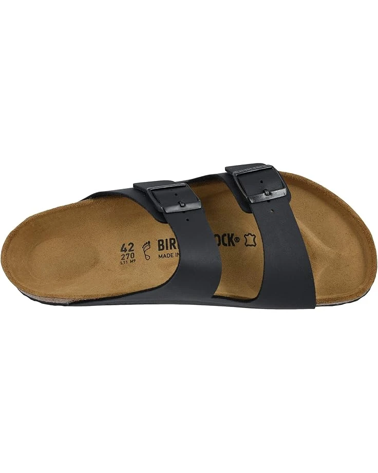 - An icon of timeless design and legendary comfort, the Arizona sandal has been defining style since 1973. The laid-back look comes in durable Birko-Flor® for a classic, leather-like finish. Complete with legendary BIRKENSTOCK design elements, like a contoured cork-latex footbed for the ultimate in support.