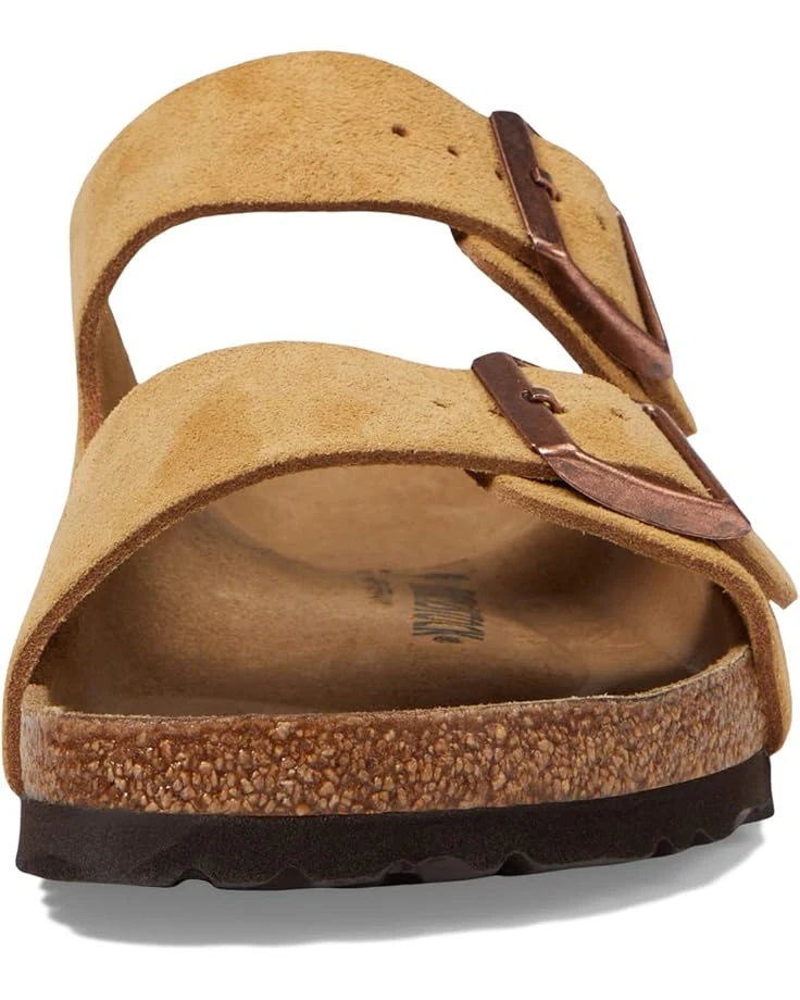 - An icon of timeless design and legendary comfort, the Birkenstock® Arizona – Suede sandal has been defining style since 1973. Classic, velvety suede gives the laid-back look that every season, any style appeal. Complete with legendary BIRKENSTOCK design elements, like a contoured cork-latex footbed for the ultimate in support.