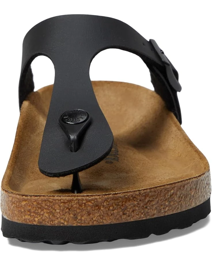 - Easy care Birko-Flor™ upper in a classic thong silhouette with an adjustable buckle for the perfect fit.