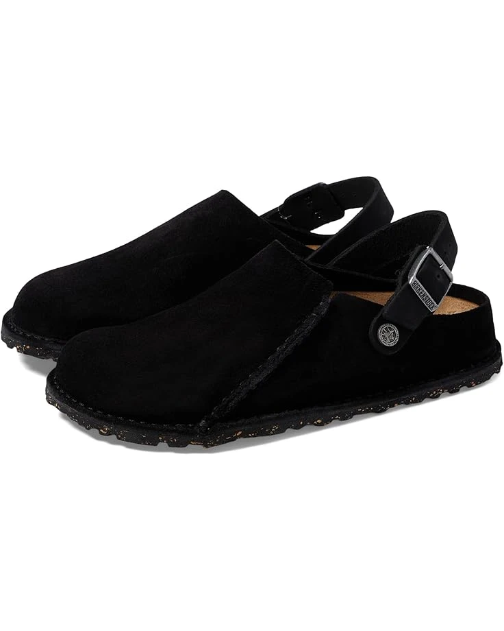 - Indulge your feet in sheer luxury by choosing the Birkenstock® Lutry 365 – Suede clogs! Designed with a suede upper and lining, these clogs wrap your feet in a cloud of softness and sophistication. The molded cork footbed offers unparalleled comfort and stability, making these footwear a true pleasure to wear.