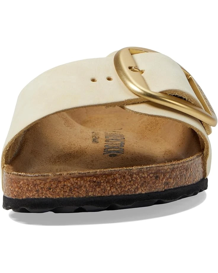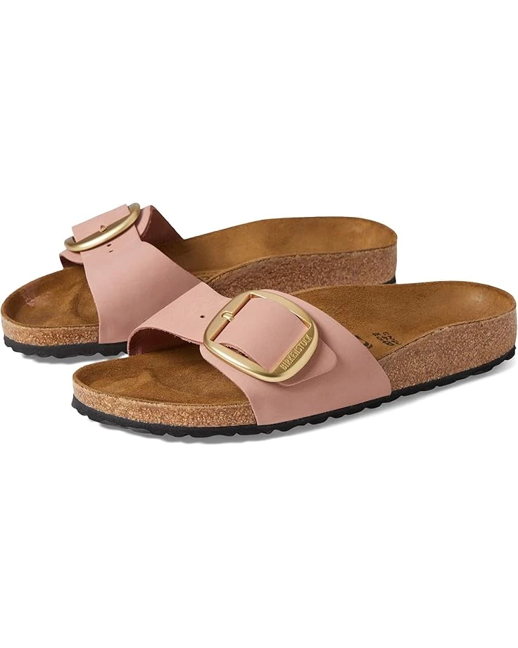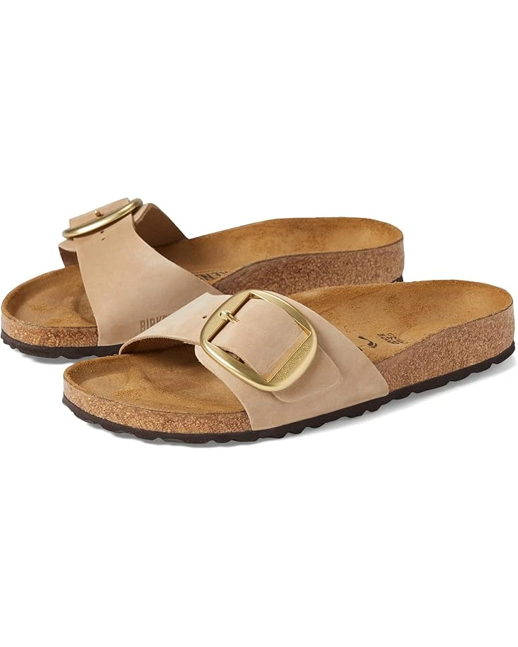 - The BIRKENSTOCK® Madrid is a veritable classic that delights the world of fashion with its minimalist design. The Big Buckle version features a large, elegant pin buckle a fantastic, striking eye-catcher on this otherwise understated sandal. The upper is made from high-quality nubuck leather that boasts a natural, rustic appearance.
