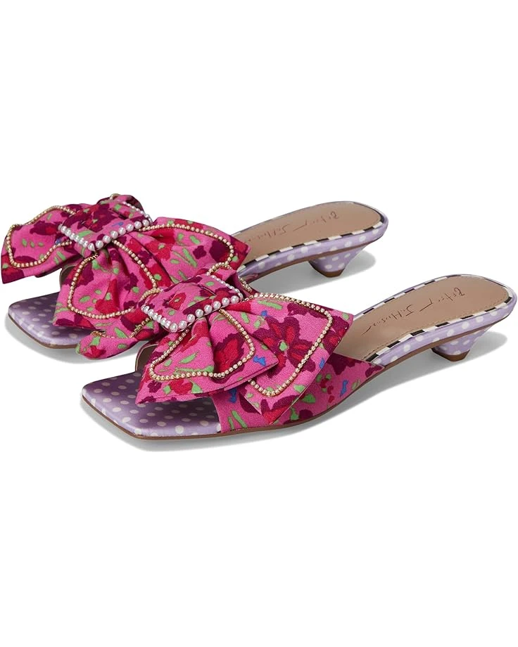 - Sugar rush for your feet styling Blueâ„¢ by Betsey Johnson Aylah. Designed for the modern fashionista, this slip-on beauty combines elegance and charm with its faux leather upper and dainty bow detail. The kitten heel adds just the right lift for all-day comfort, while the flower embellishments bring a whimsical, girly touch to your look. With a durable rubber outsole and sleek faux leather lining and insole, these heels are as practical as they are pretty.