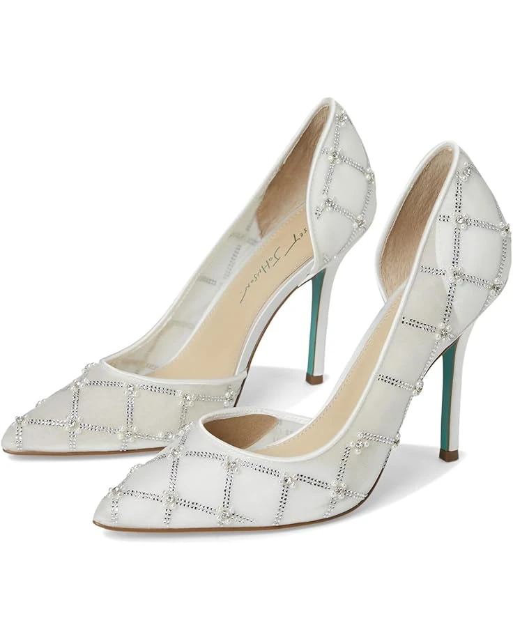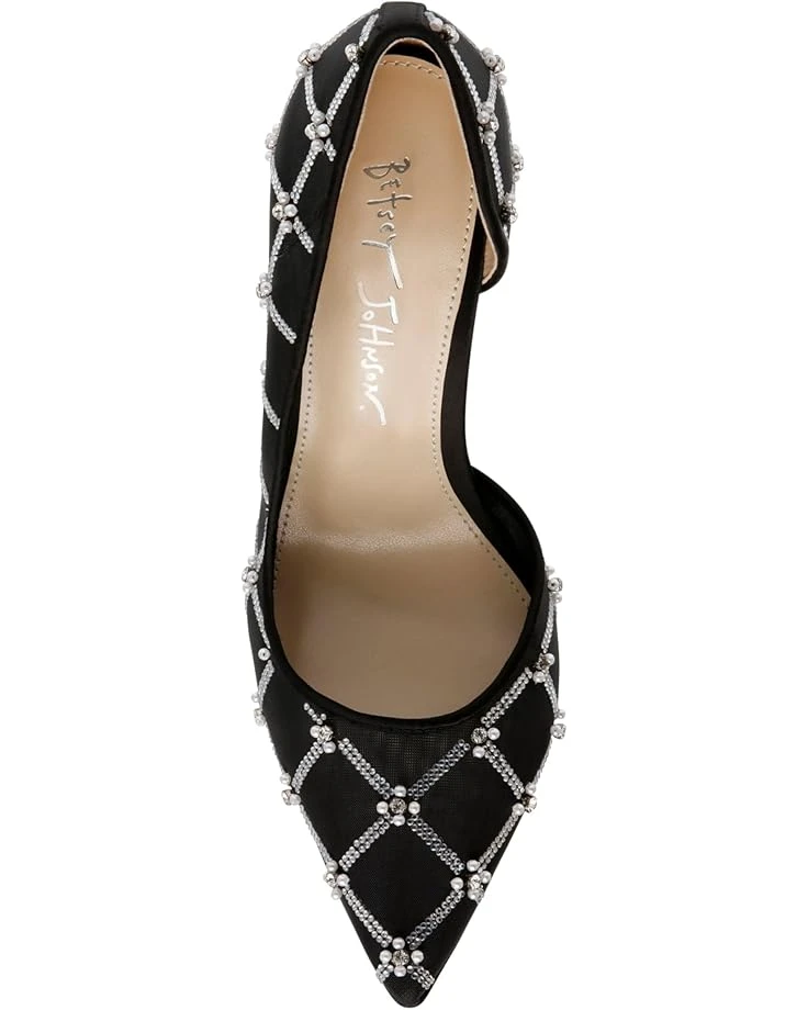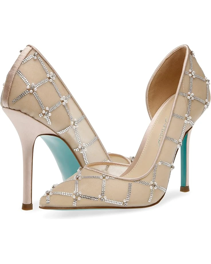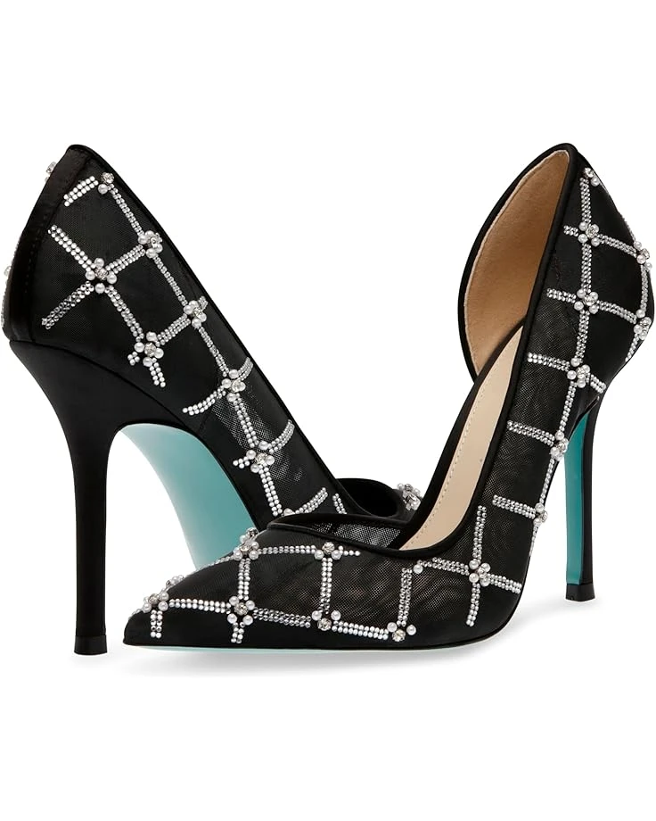 - Step into the spotlight with the Blueâ„¢ by Betsey Johnson Cruze pumps. These elegant shoes feature a sparkling mesh upper dotted with delicate rhinestones arranged in a sophisticated lattice pattern. The pointed toe adds a touch of classic refinement, while the slim stiletto heel elevates your look, literally and figuratively. Designed as slip-ons, these pumps blend convenience with glamor.