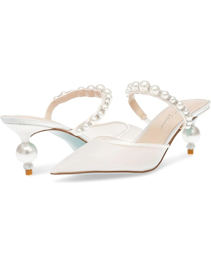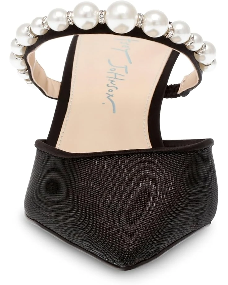 - It’s time to give a fashionable lift to your formal as well as dressy outfits with the Blue™ by Betsey Johnson Evey Heels. All beauty of these pointy toe pumps lie in the pearl embellished instep strap and the striking kitten heel with pearl detailing. The shoes are made with a mesh upper paired with a synthetic lining and a padded insole.