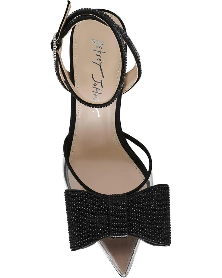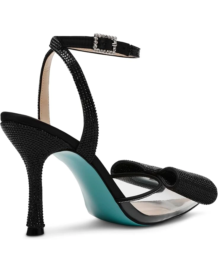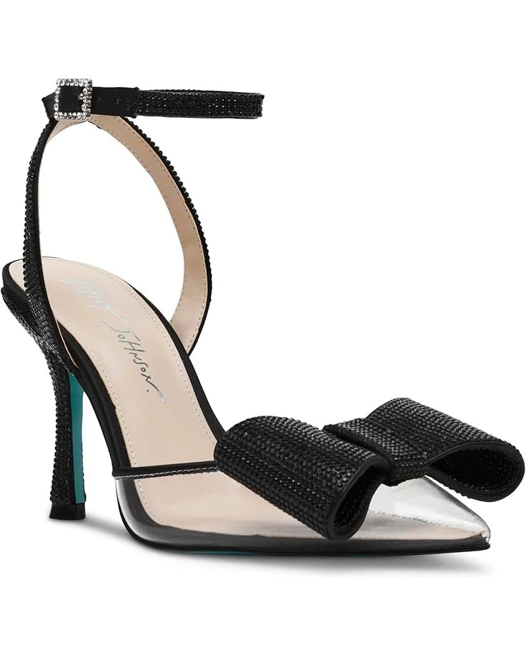 - Go drop-dead gorgeous by donning the Blue™ by Betsey Johnson Harth Heels. A bow on the toe strap can make the adjustable sandal a step ahead of vogue. It features a synthetic rubber upper with an ankle strap & buckle closure, a synthetic rubber lining, and a comfortable rubber insole. The pointed-toe design with tall stiletto heel offers a stylish touch to the heels.