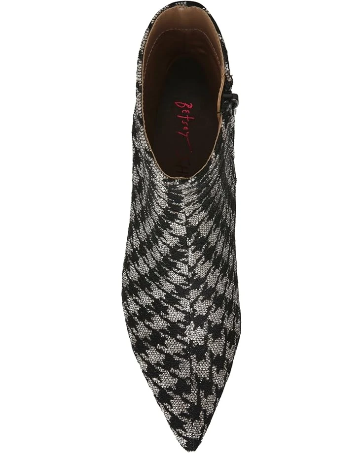 - Master sophisticated style choosing the Blue™ by Betsey Johnson Parkker. With a sleek pointed toe design and slim kitten heels, they’ll level up any look. Featuring an eye-catching design, the ankle-high booties have synthetic upper, synthetic rubber lining, and rubber insole.